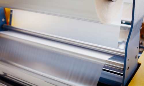ラミネートフィルムには「ホットメルト」と呼ばれる熱で溶ける接着剤が使用されています。